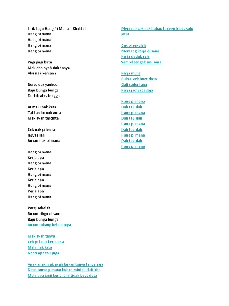 Related : Hang Pi Mana Lirik : Maybe you would like to learn more about one of these?.